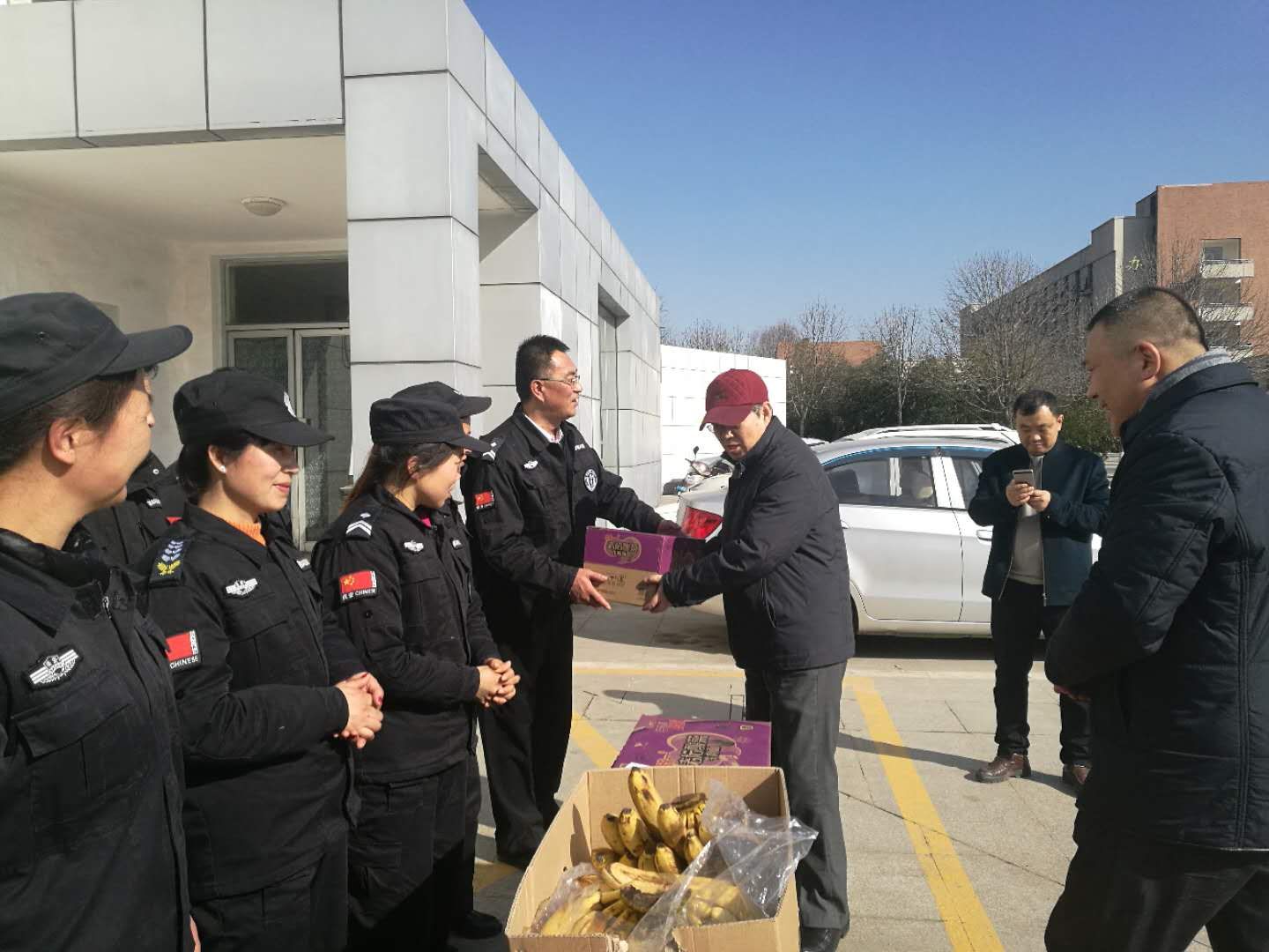 贾明远代表校党委、行政对寒假期间仍坚守岗位的校卫队员们表示衷心的感谢和诚挚的问候,同时勉励大家继续加强值班巡逻工作,认真履行工作职责,确保寒假期间校园平安和谐。最后,贾明远诚挚地祝愿校卫队员及其家人身体健康、阖家欢乐,并送上了春节慰问品。
